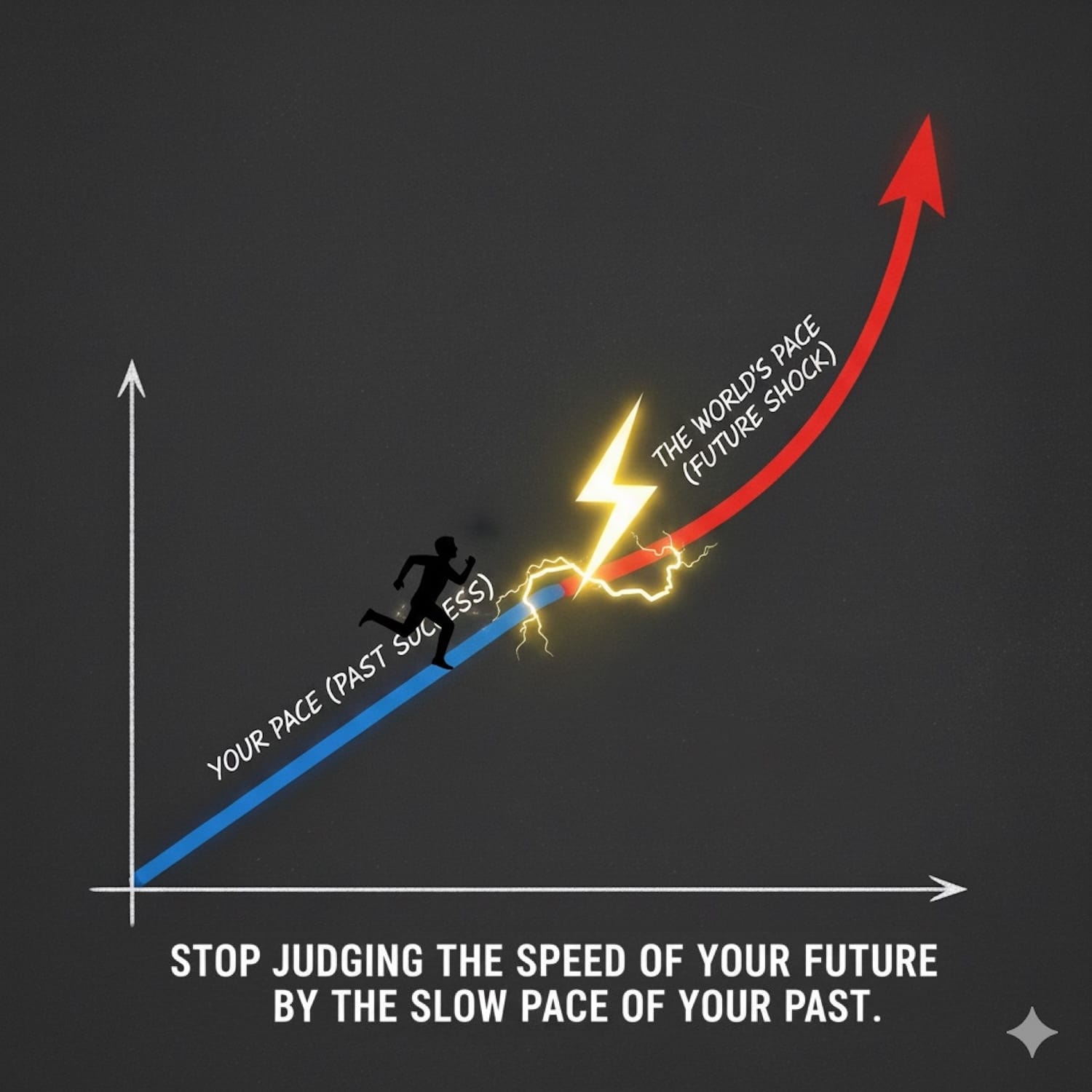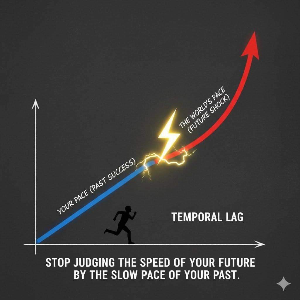 Think about it - your past career success, your accumulated knowledge, and your daily routine have all been built on a 'linear' world - one that involves a slow, steady and expected rate of change. That's gone. The world is accelerating exponentially, creating a massive Temporal Lag between the speed you move and the speed the world demands.