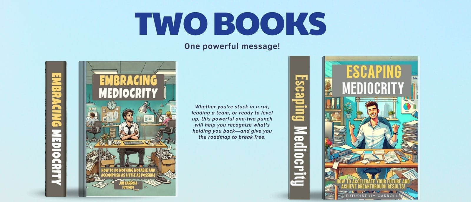 You are mediocre when you keep doing what everyone else does. You'll escape it through uniqueness! Buy the books at mediocrity.jimcarroll.com