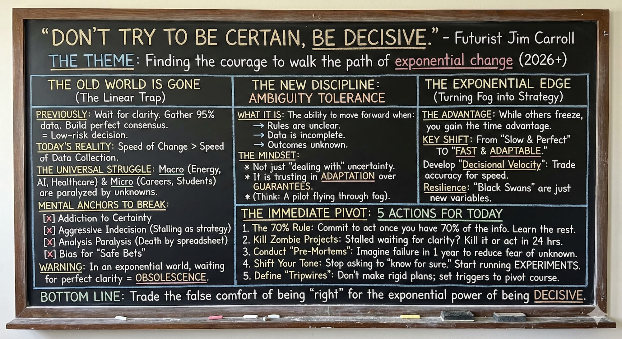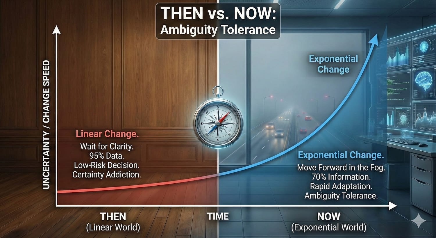 Bottom line? In an exponential world, waiting for perfect clarity is a guaranteed path to obsolescence.