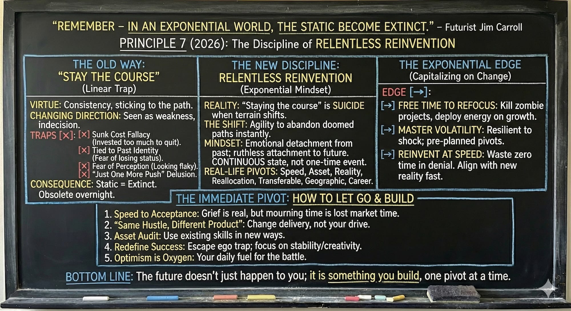 Day 7? Let's focus on Relentless Reinvention, and why "staying the course" is the most dangerous strategy of all