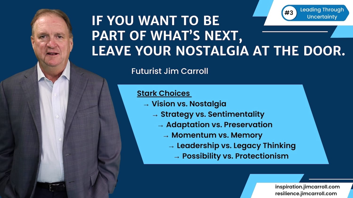 It was interesting to see him refer. to the fact that nostalgia is not a strategy. That was post #3 in my Uncertainty seriesfrom last year - "If you want to be part of what's next, leave your nostalgia at the door."