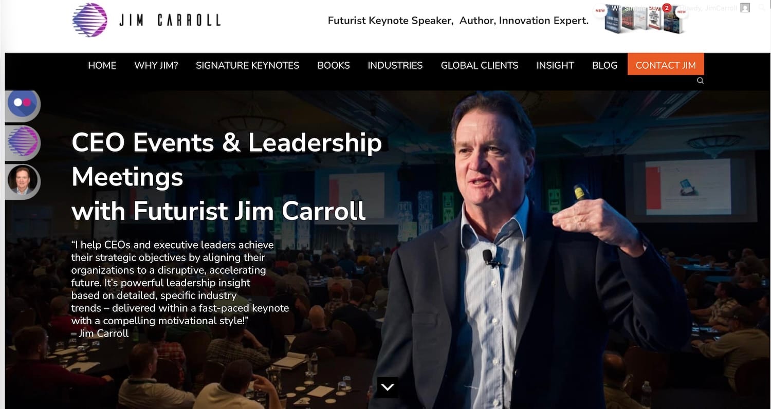 Then there are the CEO and senior management specific keynotes I do - for the last 15 years, this has been the bread and butter of my business. I've got a whole page devoted to the work I do here - it can be found, of course, at https://ceo.jimcarroll.com!