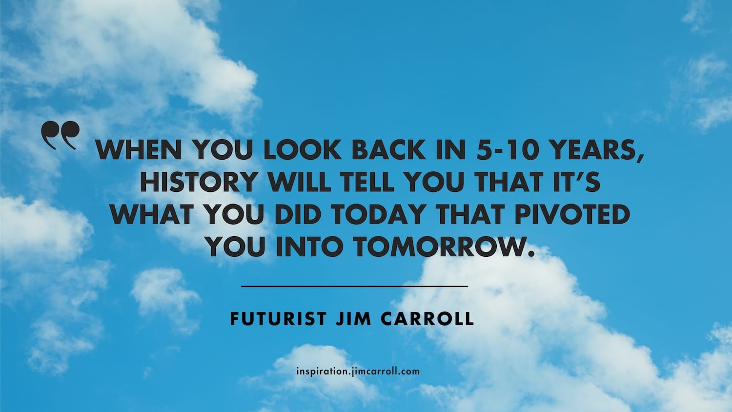 "When you look back in 5-10 years, history will tell you that it’s what you did today that pivoted you into tomorrow." - Futurist Jim Carroll