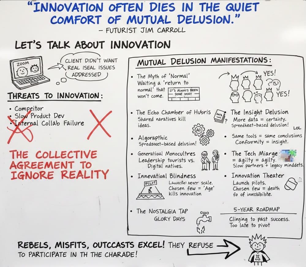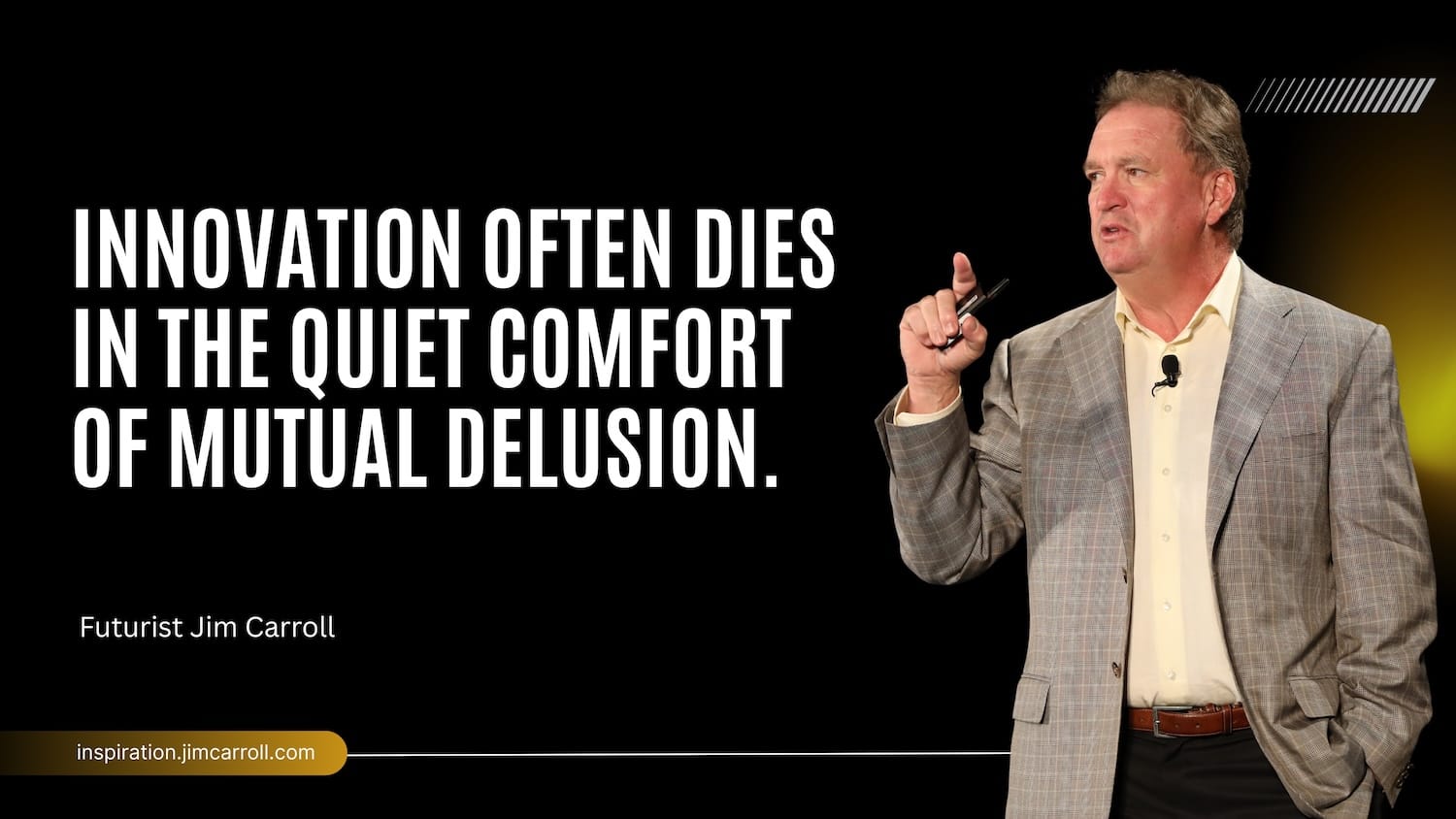 "Innovation often dies in the quiet comfort of mutual delusion." - Futurist Jim Carroll