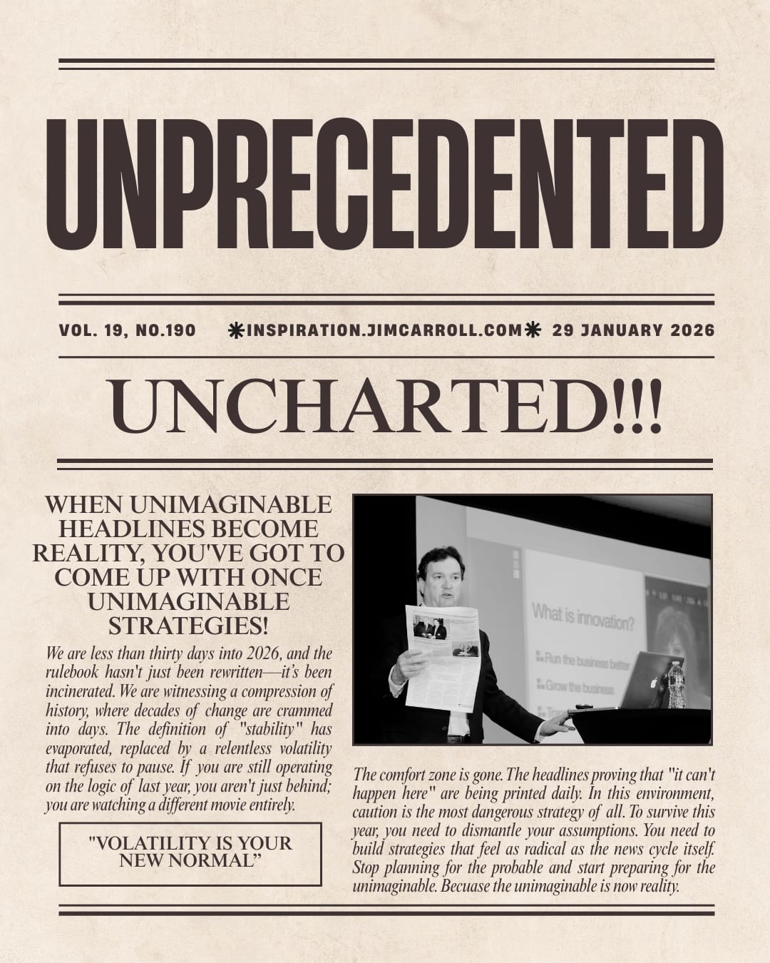 "When unimaginable headlines become reality, you've got to come up with once unimaginable strategies!" - Futurist Jim Carroll