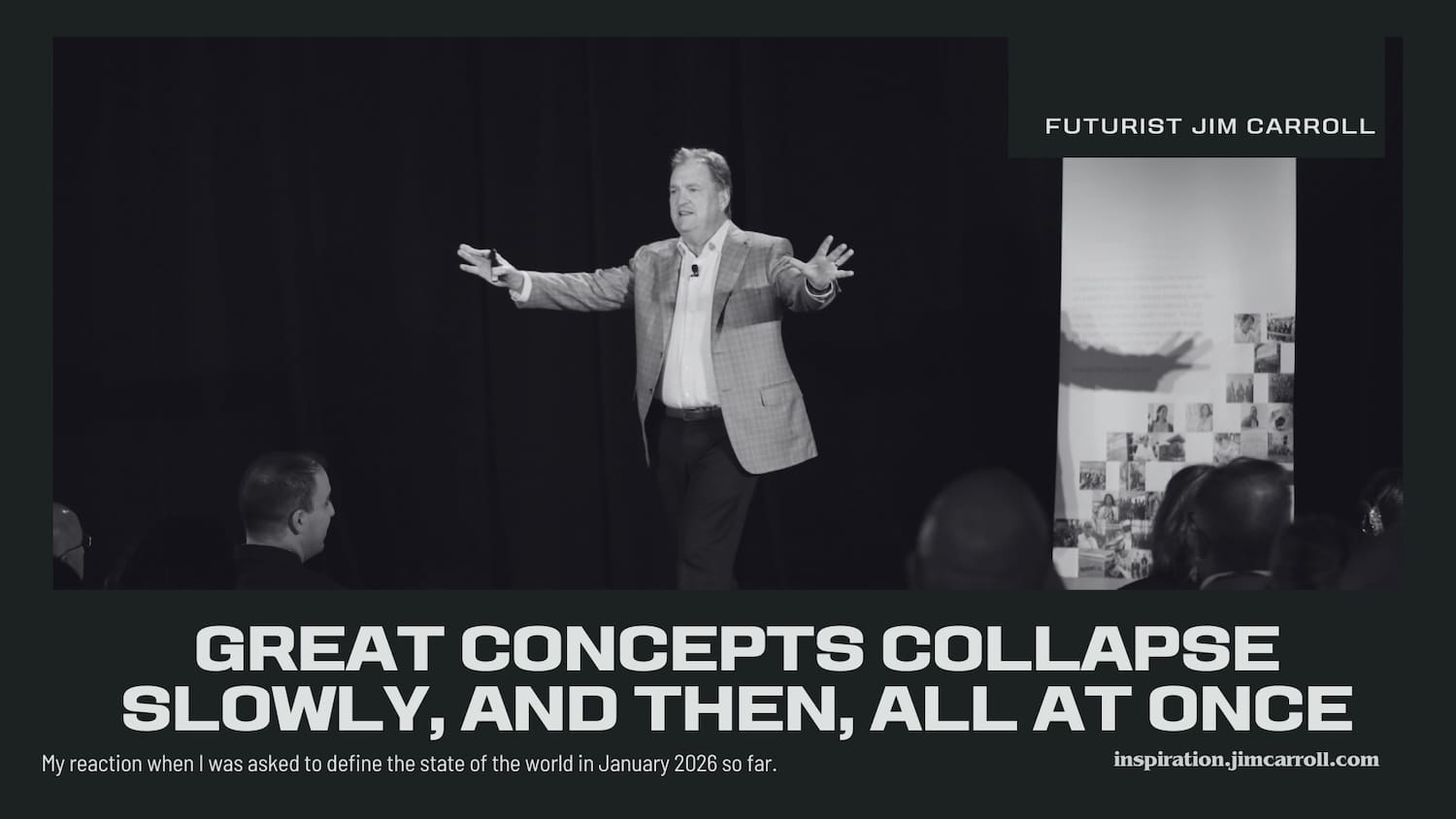 "Great concepts collapse slowly, and then, all at once." - Futurist Jim Carroll