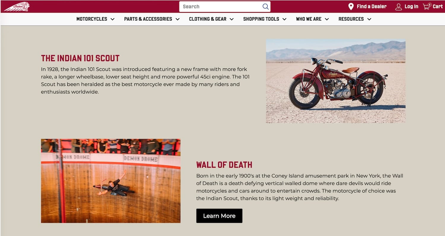 Indian Motorcycles, an iconic brand to this day, features details on the bike as well as information bout the 'Wall of Death.'