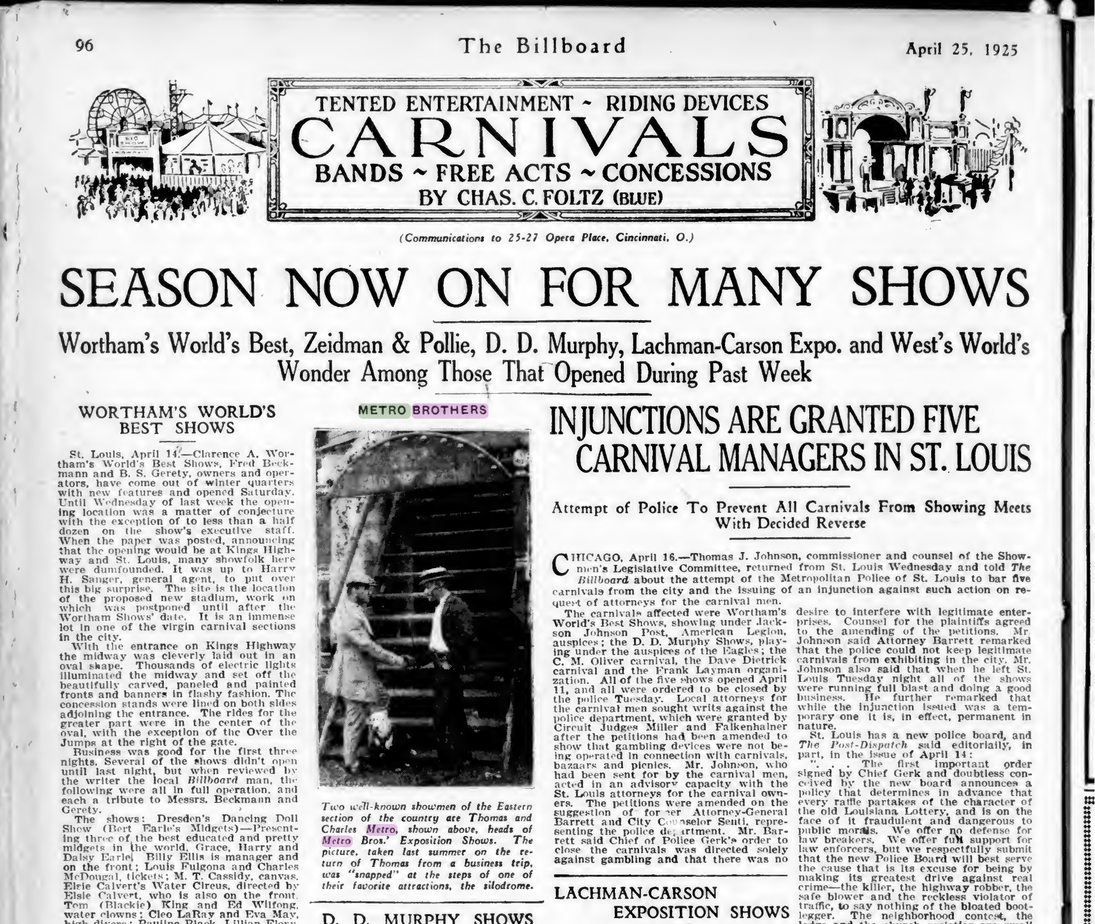 His appearances were often covered in the media, sometimes referring to his nickname, Freddy. This one appeared in 1922.
