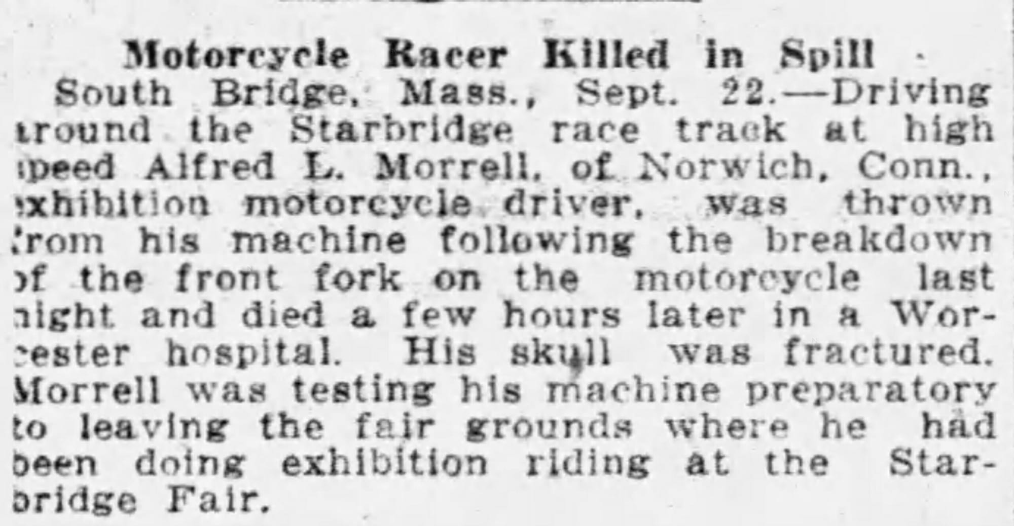 The bike on which he crashed? A 1922 Indian Scout, which was also known as "The wall of death machine."