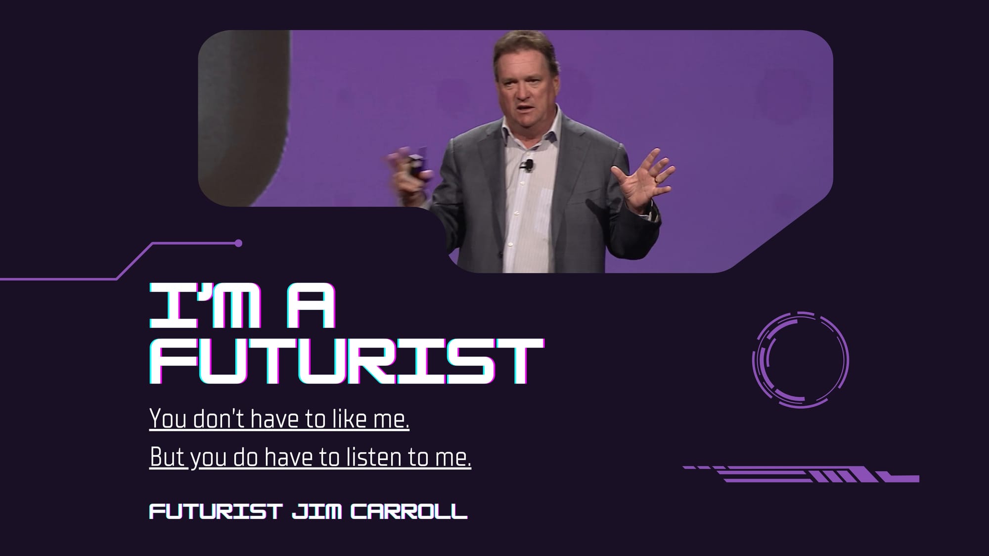 "I'm a futurist. You don't have to like me. But you do have to listen to me." - Futurist Jim Carroll