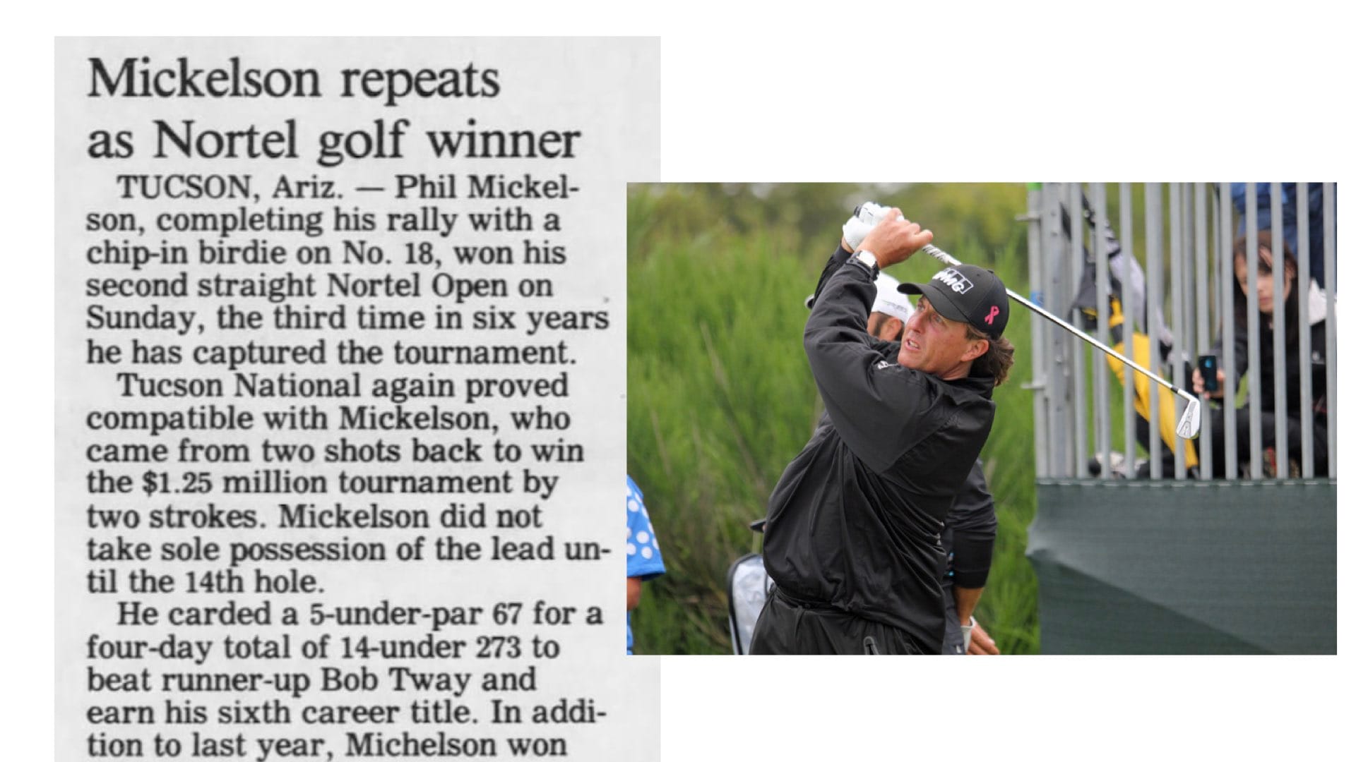 But what is really interesting is that way back in January 1996, I spoke in the same facility for Nortel. Remember them - at one time, they were the world's largest telecom hardware and software provider, with a valuation in the billions. They brought me down for a business session they were running parallel to the Nortel Open, an event on the PGA tour circuit that they were sponsoring. (Mickelson won.)