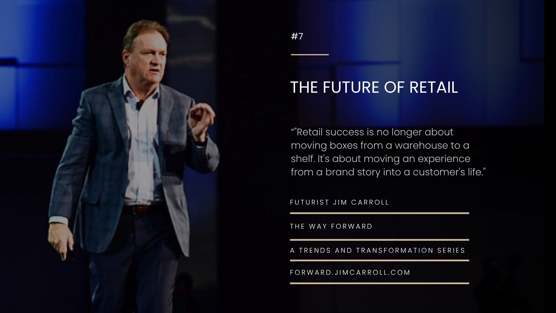 “Retail success is no longer about moving boxes from a warehouse to a shelf. It's about moving an experience from a brand story into a customer's life." - Futurist Jim Carroll