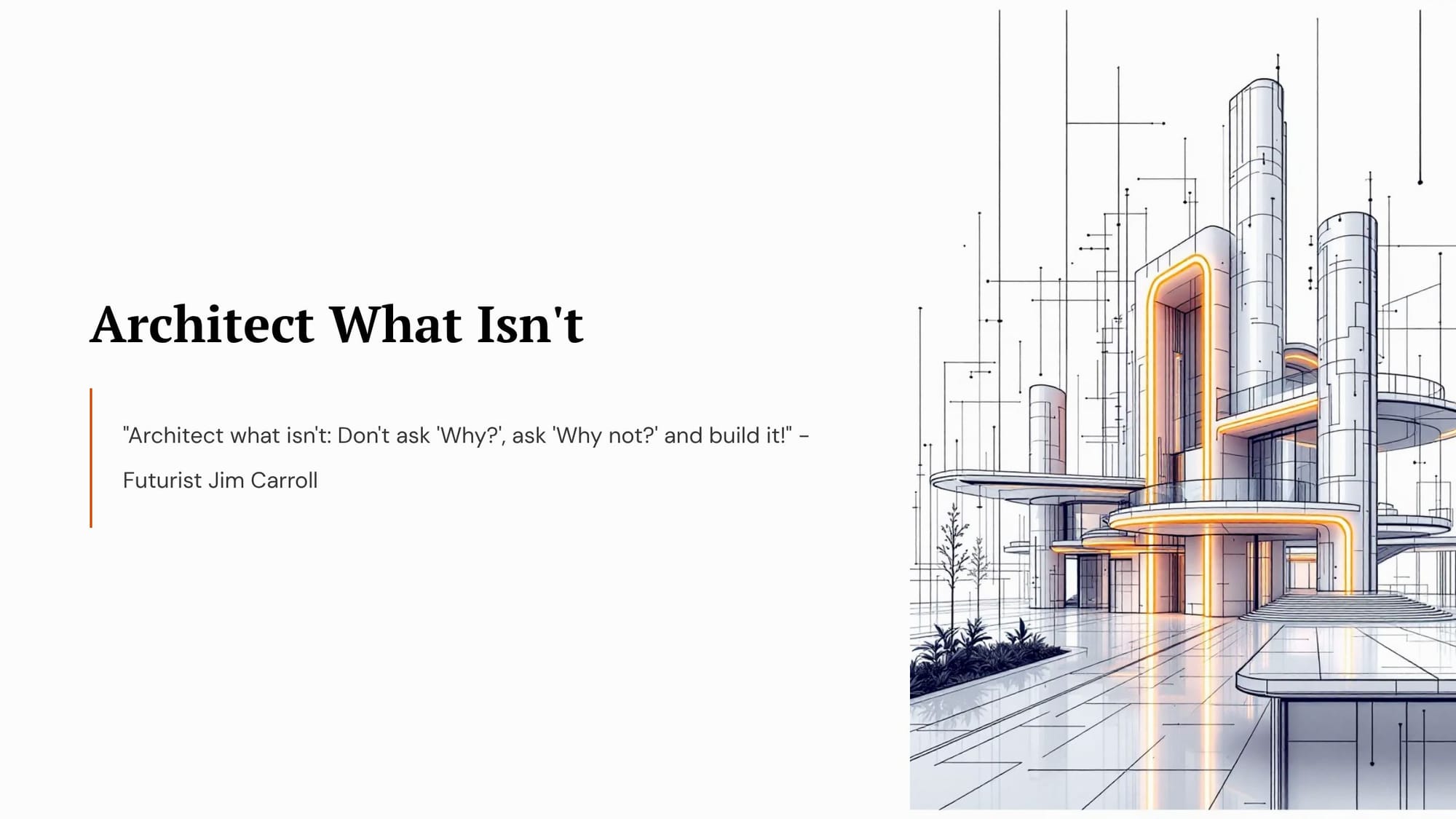 "Architect what isn't: Don't ask 'Why?', ask 'Why not?' and build it!" - Futurist Jim Carroll