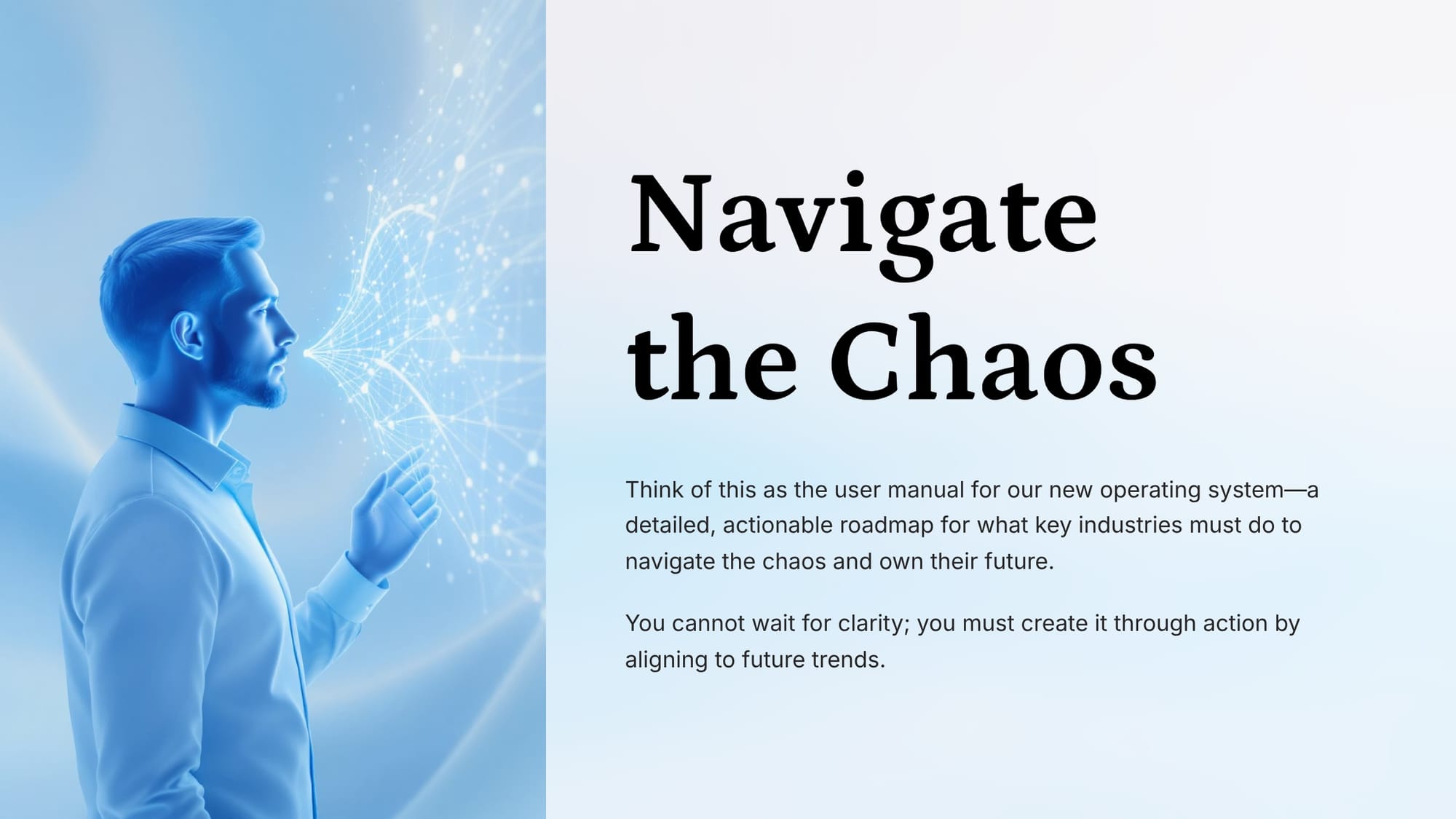 Think of this as the user manual for our new operating system-a detailed, actionable roadmap for what key industries must do to navigate the chaos and own their future.